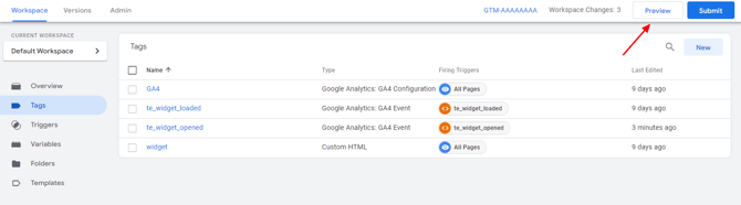 1. Go to the Preview and Debug mode in Google Tag Manager.