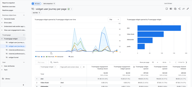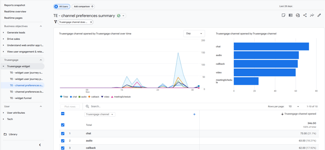 Below we present how using several GA4 report groups prepared for this integration help us understand the role of the widget. Starting with the widget user journey report group where we learn about widget usage. Then through channel preferences reports we observe visitors' preferences for selected channels. Finally, the widget funnel report presents widget usage from the customer's perspective.
