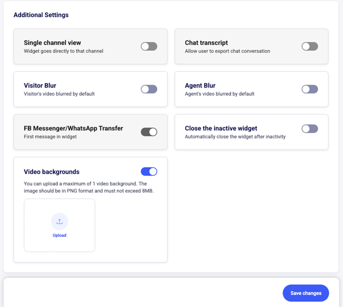 When enabled, every video call coming from this widget will display the uploaded background image behind the agent.