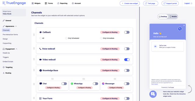 This guide explains how to configure your kiosk setup for either Voice or Video WebRTC calls using the TrueEngage management panel.