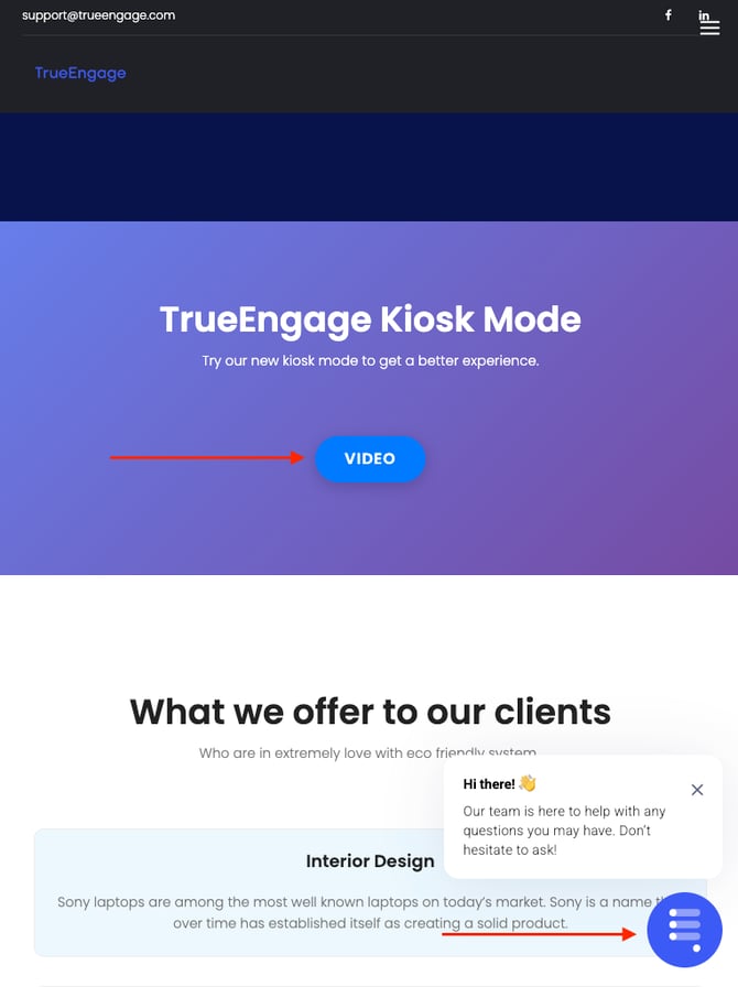 TrueEngage lets you deploy WebRTC Voice or Video calls on kiosks or public terminals — providing a seamless way for visitors to connect with agents through real-time communication directly on-screen.