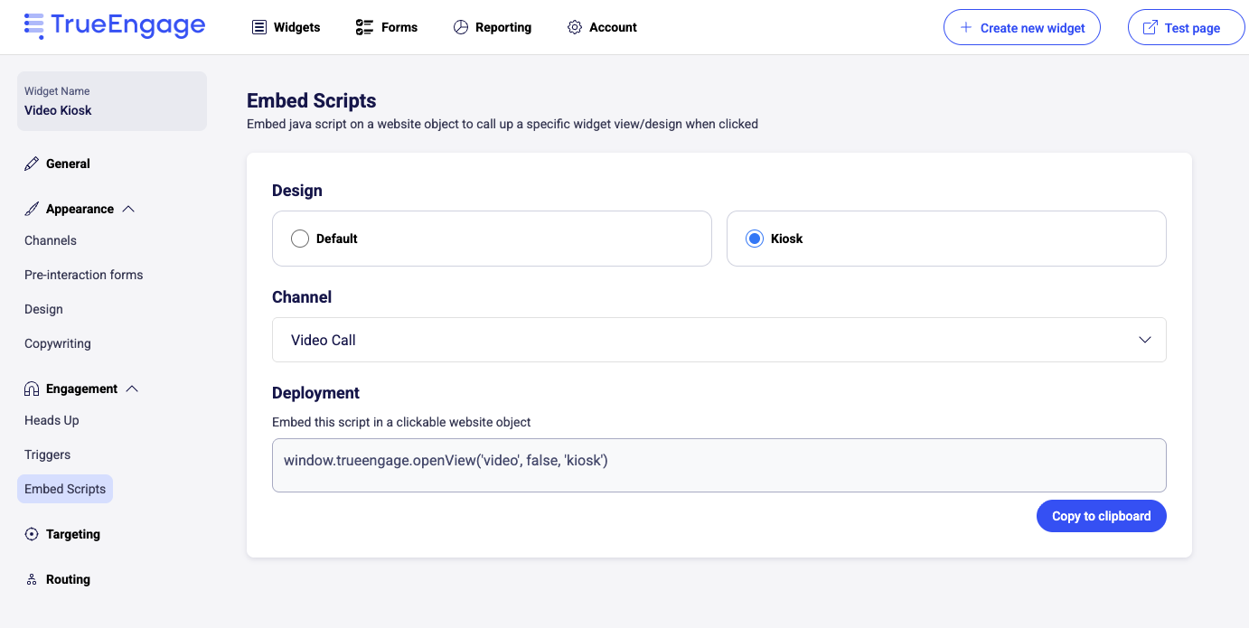 You can deploy the widget either through manual embedding or by enabling engagement triggers.